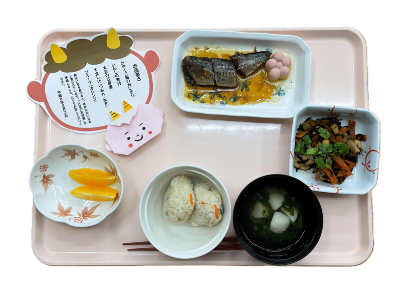 2026年2月 イベントDate : 2026/2/ 3 節分の昼食 今日は、節分です。 利用者の皆さんの食事も節分を考えて いわしや大豆の五目煮を提供させていただきました。 これから豆まきが始まります。 1